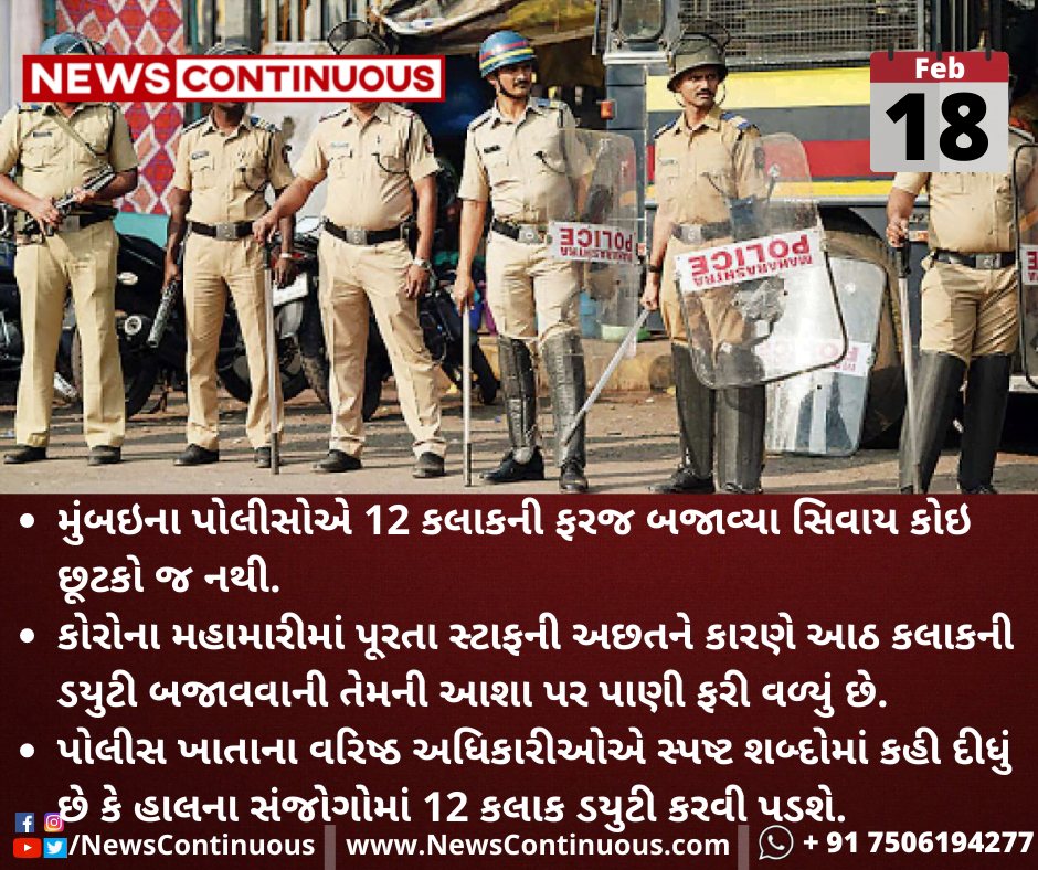 મુંબઇના પોલીસોએ 12 કલાકની ફરજ બજાવ્યા સિવાય કોઇ છૂટકો જ નથી.