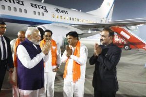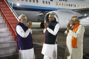 વડાપ્રધાન નરેન્દ્રભાઈ મોદી ગુજરાતના પદનામિત મુખ્યમંત્રી ભૂપેન્દ્ર પટેલના આજે ગાંધીનગરમાં યોજાનાર શપથ વિધિ સમારોહમાં સહભાગી થઈ પ્રેરણા આપવા રવિવારે રાત્રે અમદાવાદ આવી પહોંચ્યા છે.