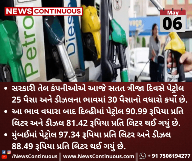 આ ભાવ વધારા બાદ દિલ્હીમાં પેટ્રોલ 90.99 રૂપિયા પ્રતિ લિટર અને ડીઝલ 81.42 રૂપિયા પ્રતિ લિટર થઈ ગયું છે.
