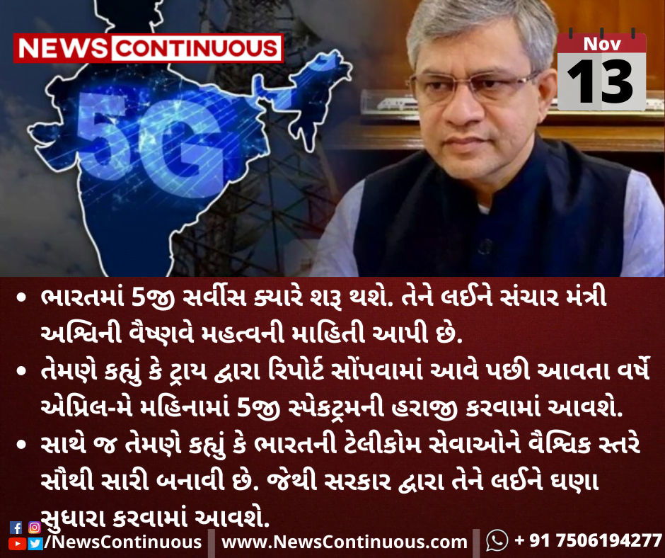 ભારતમાં 5જી સર્વીસ ક્યારે શરૂ થશે. તેને લઈને સંચાર મંત્રી અશ્વિની વૈષ્ણવે મહત્વની માહિતી આપી છે.