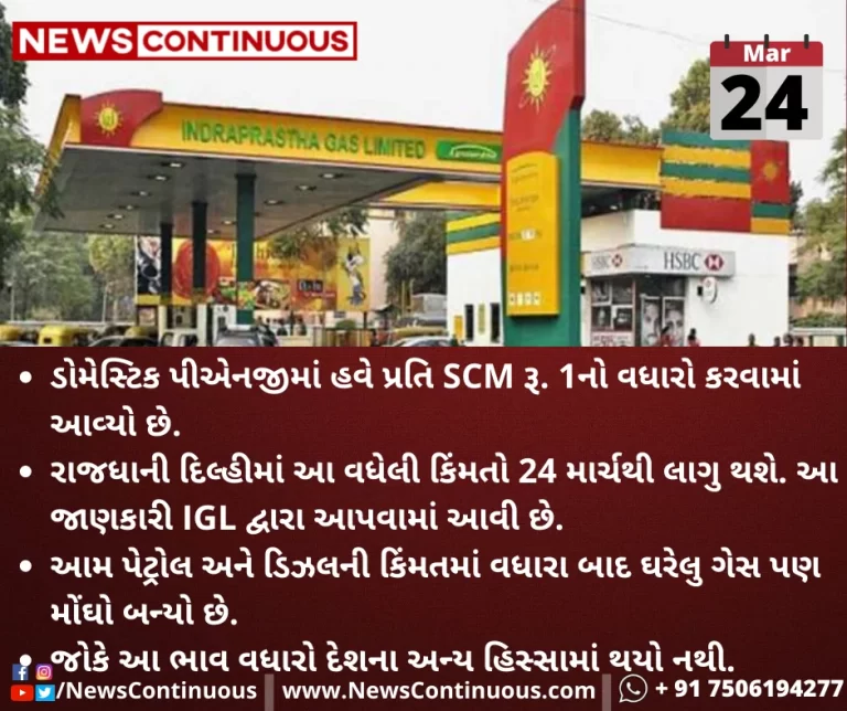 રાજધાની દિલ્હીમાં આ વધેલી કિંમતો 24 માર્ચથી લાગુ થશે. આ જાણકારી IGL દ્વારા આપવામાં આવી છે.