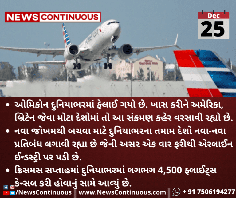 ક્રિસમસ સપ્તાહમાં દુનિયાભરમાં લગભગ 4,500 ફ્લાઈટ્સ કેન્સલ કરી હોવાનું સામે આવ્યું છે.
