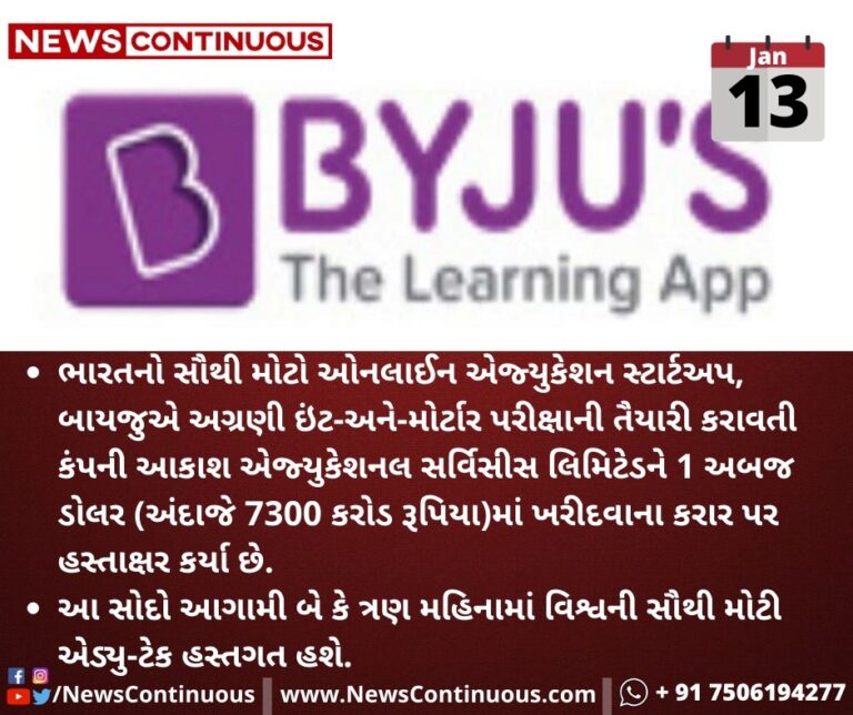 ભારતનો સૌથી મોટો ઓનલાઈન એજ્યુકેશન સ્ટાર્ટઅપ, બાયજુએ અગ્રણી ઇંટ-અને-મોર્ટાર પરીક્ષાની તૈયારી કરાવતી કંપની આકાશ એજ્યુકેશનલ સર્વિસીસ લિમિટેડને 1 અબજ ડોલર (અંદાજે 7300 કરોડ રૂપિયા)માં ખરીદવાના કરાર પર હસ્તાક્ષર કર્યા છે.
