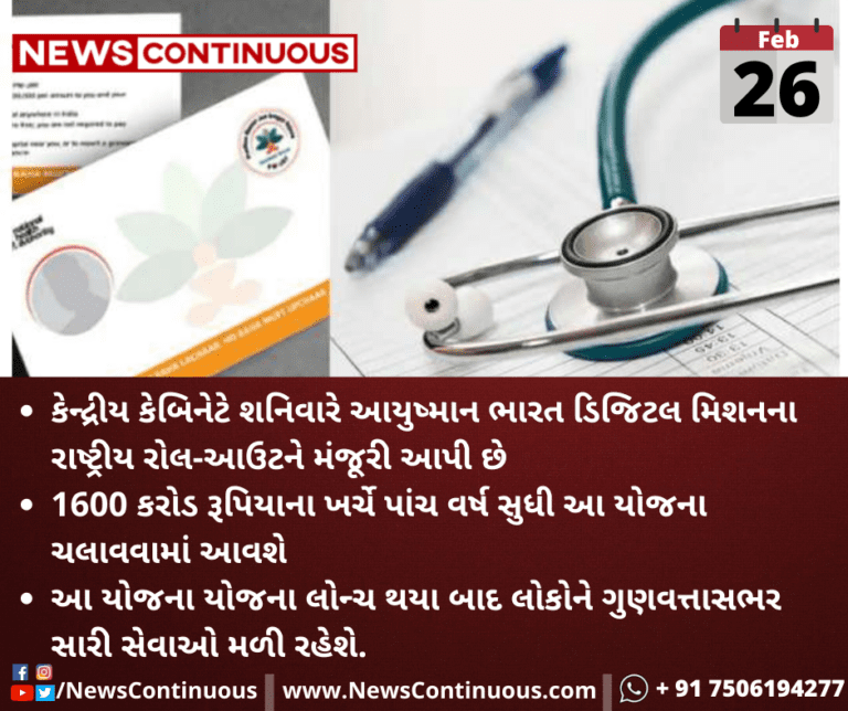 કેન્દ્રીય કેબિનેટે શનિવારે આયુષ્માન ભારત ડિજિટલ મિશનના રાષ્ટ્રીય રોલ-આઉટને મંજૂરી આપી છે