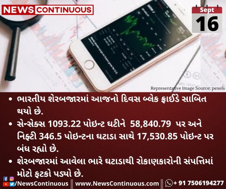 ભારતીય શેરબજારમાં (Indian stock market) આજનો દિવસ બ્લેક ફ્રાઈડે(Black Friday) સાબિત થયો છે.