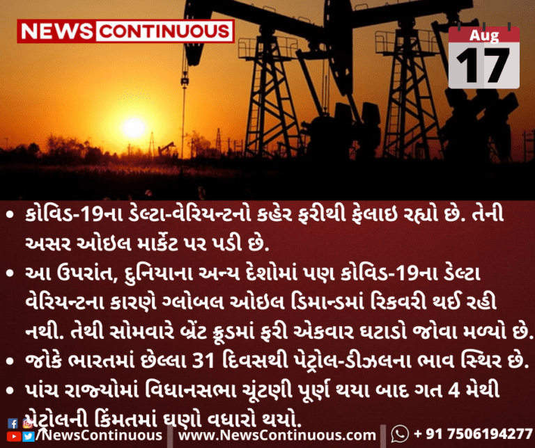આ ઉપરાંત, દુનિયાના અન્ય દેશોમાં પણ કોવિડ-19ના ડેલ્ટા વેરિયન્ટના કારણે ગ્લોબલ ઓઇલ ડિમાન્ડમાં રિકવરી થઈ રહી નથી. તેથી સોમવારે બ્રેંટ ક્રૂડમાં ફરી એકવાર ઘટાડો જોવા મળ્યો છે.