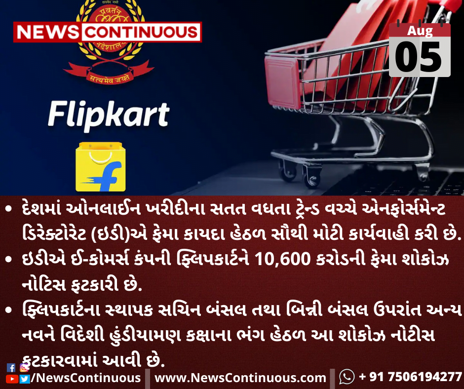 ઇડીએ ઈ-કોમર્સ કંપની ફ્લિપકાર્ટને 10,600 કરોડની ફેમા શોકોઝ નોટિસ ફટકારી છે.
