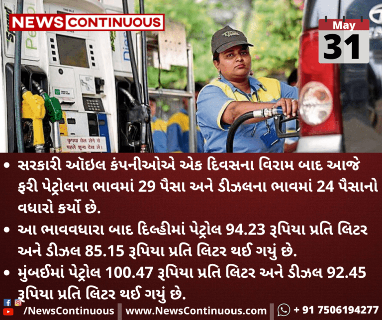 આ ભાવવધારા બાદ દિલ્હીમાં પેટ્રોલ 94.23 રૂપિયા પ્રતિ લિટર અને ડીઝલ 85.15 રૂપિયા પ્રતિ લિટર થઈ ગયું છે.