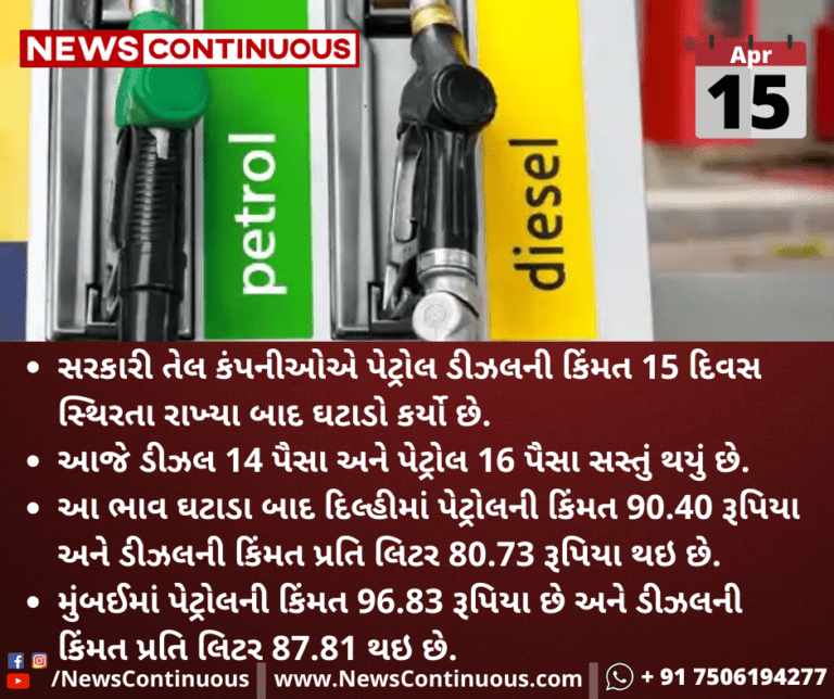 આજે ડીઝલ 14 પૈસા અને પેટ્રોલ 16 પૈસા સસ્તું થયું છે.