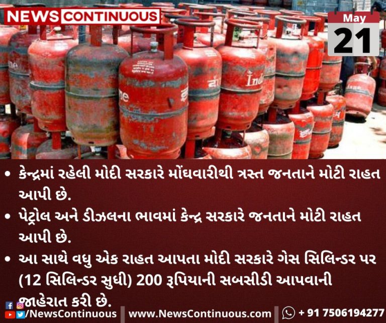 આ સાથે વધુ એક રાહત આપતા મોદી સરકારે ગેસ સિલિન્ડર(Gas cylinder) પર (12 સિલિન્ડર સુધી) 200 રૂપિયાની સબસીડી(Subsidy) આપવાની જાહેરાત કરી છે.