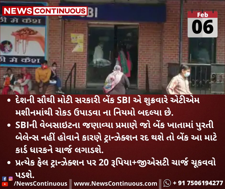 - દેશની સૌથી મોટી સરકારી બેંક SBI એ શુક્રવારે એટીએમ મશીનમાંથી રોકડ ઉપાડવા ના નિયમો બદલ્યા છે.