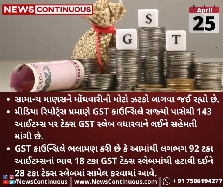 મીડિયા રિપોર્ટ્સ પ્રમાણે GST કાઉન્સિલે(GST council) રાજ્યો પાસેથી 143 આઈટમ્સ પર ટેક્સ GST સ્લેબ(GST slab) વધારવાને લઈને સહેમતી માંગી છે.