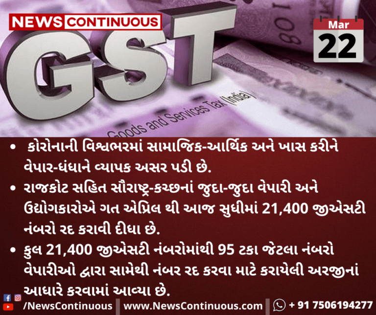 રાજકોટ સહિત સૌરાષ્ટ્ર-કચ્છનાં જુદા-જુદા વેપારી અને ઉદ્યોગકારોએ ગત એપ્રિલ થી આજ સુધીમાં 21,400 જીએસટી નંબરો રદ કરાવી દીધા છે.