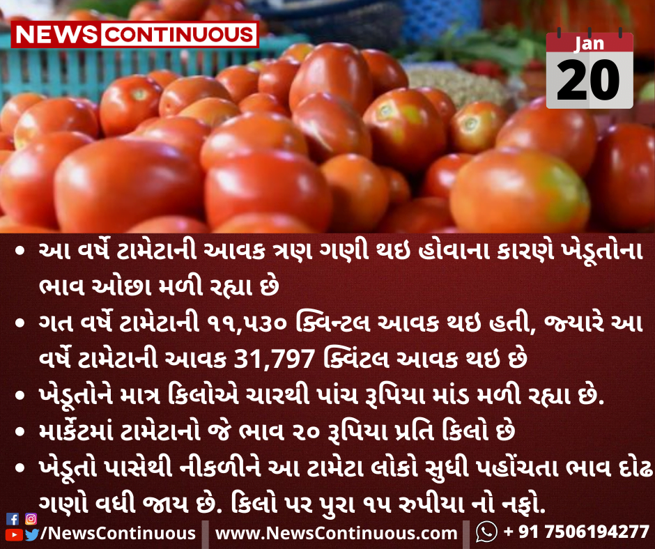 - માર્કેટમાં ટામેટાનો જે ભાવ ૨૦ રૂપિયા પ્રતિ કિલો છે
