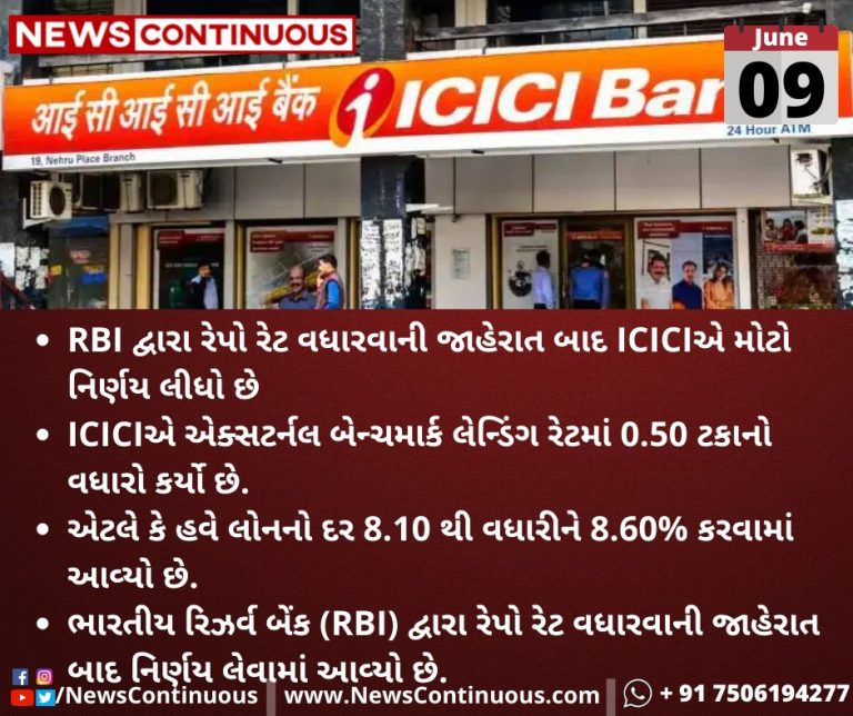 ICICIએ એક્સટર્નલ બેન્ચમાર્ક લેન્ડિંગ રેટમાં(External Benchmark Lending Rate) 0.50 ટકાનો વધારો કર્યો છે.