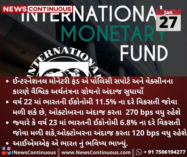 ઈન્ટરનેશનલ મોનેટરી ફંડ એ પોલિસી સપોર્ટ અને વેક્સીનના કારણે વૈશ્વિક અર્થતંત્રના ગ્રોથનો અંદાજ સુધાર્યો
