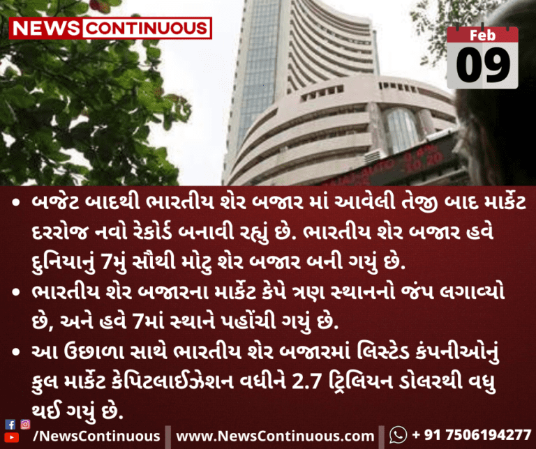 બજેટ બાદથી ભારતીય શેર બજાર માં આવેલી તેજી બાદ માર્કેટ દરરોજ નવો રેકોર્ડ બનાવી રહ્યું છે.