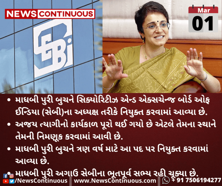 માધબી પુરી બુચને સિક્યોરિટીઝ એન્ડ એક્સચેન્જ બોર્ડ ઓફ ઈન્ડિયા (સેબી)ના અધ્યક્ષ તરીકે નિયુક્ત કરવામાં આવ્યા છે.