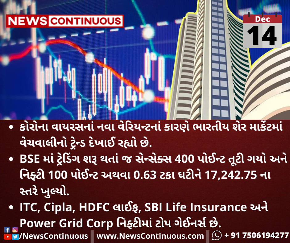 કોરોના વાયરસનાં નવા વેરિયન્ટનાં કારણે ભારતીય શેર માર્કેટમાં વેચવાલીનો ટ્રેન્ડ દેખાઈ રહ્યો છે.