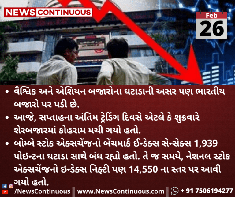 બોમ્બે સ્ટોક એક્સચેંજનો બેંચમાર્ક ઈન્ડેક્સ સેન્સેક્સ 1,939પોઇન્ટના ઘટાડા સાથે બંધ રહ્યો હતો. તે જ સમયે, નેશનલ સ્ટોક એક્સચેંજનો ઇન્ડેક્સ નિફ્ટી પણ 14,550 ના સ્તર પર આવી ગયો હતો.