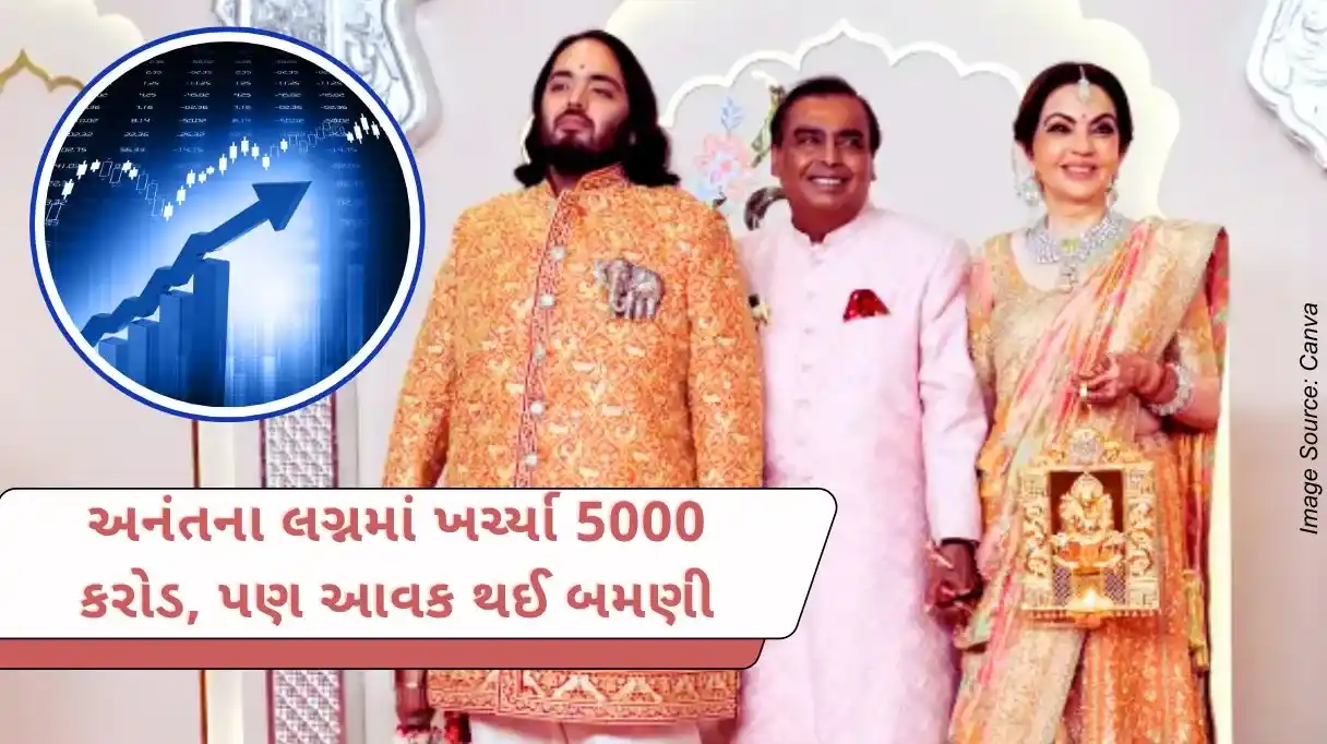 Mukesh Ambani: ભારતના સૌથી મોટા ઉદ્યોગપતિના નાના પુત્ર અનંત અંબાણી અને રાધિકા મર્ચન્ટના લગ્ન ( Anant Ambani Radhika Merchant Wedding ) શુક્રવારે મુંબઈમાં થઈ ગયા છે. સપ્તાહના છેલ્લા ટ્રેડિંગ દિવસે અંબાણીની કંપની રિલાયન્સ ઈન્ડસ્ટ્રીઝના ( Reliance Industries ) શેરમાં ( Stock Market ) એક ટકાથી વધુનો ઉછાળો જોવા મળ્યો હતો. આ કારણે અંબાણીની નેટવર્થમાં પણ વધારો થયો છે. બ્લૂમબર્ગ બિલિયોનેર્સ ઇન્ડેક્સ અનુસાર, શુક્રવારે અંબાણીની કુલ સંપત્તિમાં $1.21 બિલિયન એટલે કે લગભગ રૂ. 1,01,05,84,13,500 નો વધારો થયો છે. આ સાથે તેમની નેટવર્થ હવે વધીને $121 બિલિયન સુધી પહોંચી ગઈ છે. તે વિશ્વના સૌથી અમીર લોકોની યાદીમાં હાલ 11મા નંબરે યથાવત છે. આ વર્ષે તેની નેટવર્થમાં 24.2 બિલિયન ડોલરનો વધારો થયો છે.