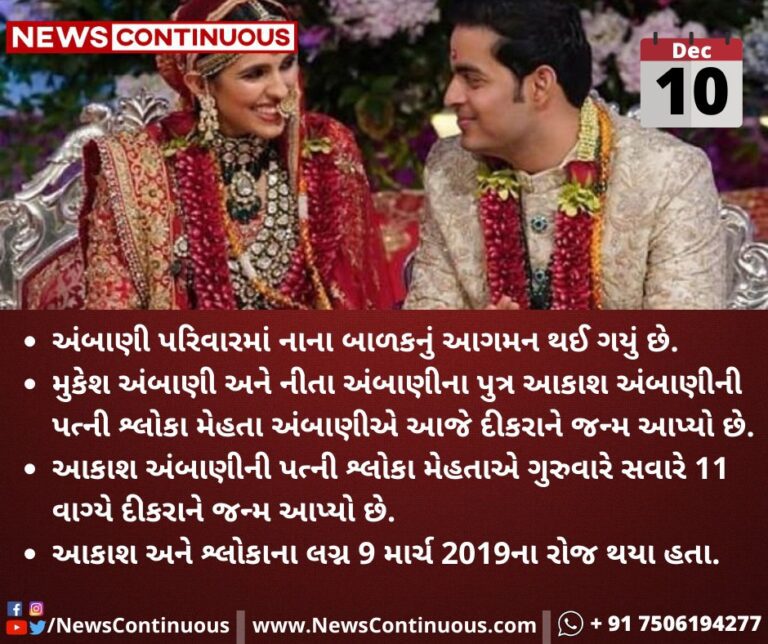 - ઉદ્યોગપતિ મુકેશ અંબાણી અને નીતા અંબાણી દાદા-દાદી બન્યા. પરિવાર માં એક નવા સદસ્ય નુ આગમન થયું. જાણો વિગત.