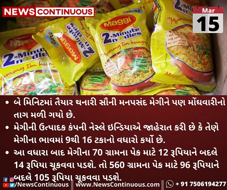 આ વધારા બાદ મેગીના 70 ગ્રામના પેક માટે 12 રૂપિયાને બદલે 14 રૂપિયા ચૂકવવા પડશે. તો 560 ગ્રામના પેક માટે 96 રૂપિયાને બદલે 105 રૂપિયા ચૂકવવા પડશે.