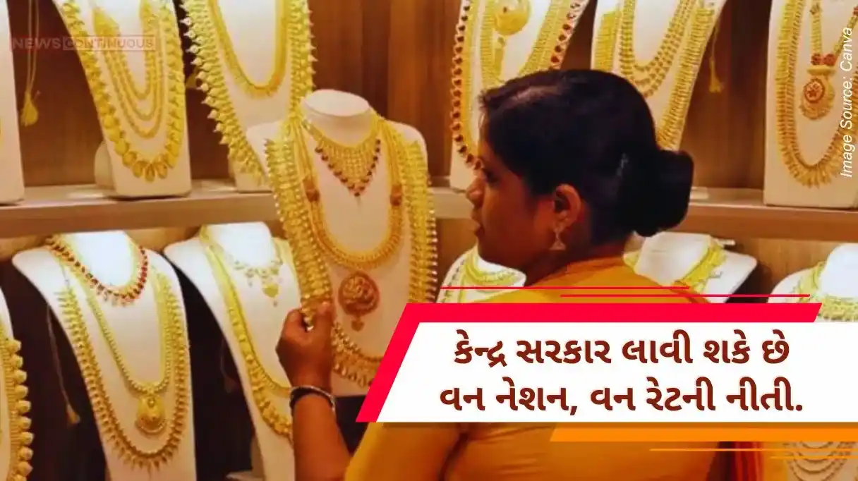 One Nation One Rate Policy : ‘વન નેશન, વન રેટ’ની ચર્ચા હાલ દેશભરમાં થઇ રહી છે. નામથી જ ખ્યાલ આવે છે કે, ‘વન નેશન, વન રેટ’ એટલે દેશભરમાં ચીજવસ્તુઓ માટે એક જ કિંમતો. પરંતુ કહેવામાં આવી રહ્યું છે કે આ નિયમ તમામ સામાન પર નહીં પરંતુ માત્ર સોના ( Gold ) પર લાગુ થશે. એટલે કે ટૂંક સમયમાં જ આખા દેશમાં સોનાનો હવે એક જ ભાવ ( Gold Price ) રાખવામાં આવશે.