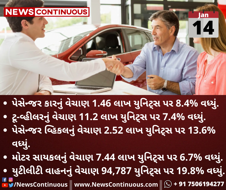 પેસેન્જર વ્હિકલનું વેચાણ 2.52 લાખ યુનિટ્સ પર 13.6% વધ્યું.