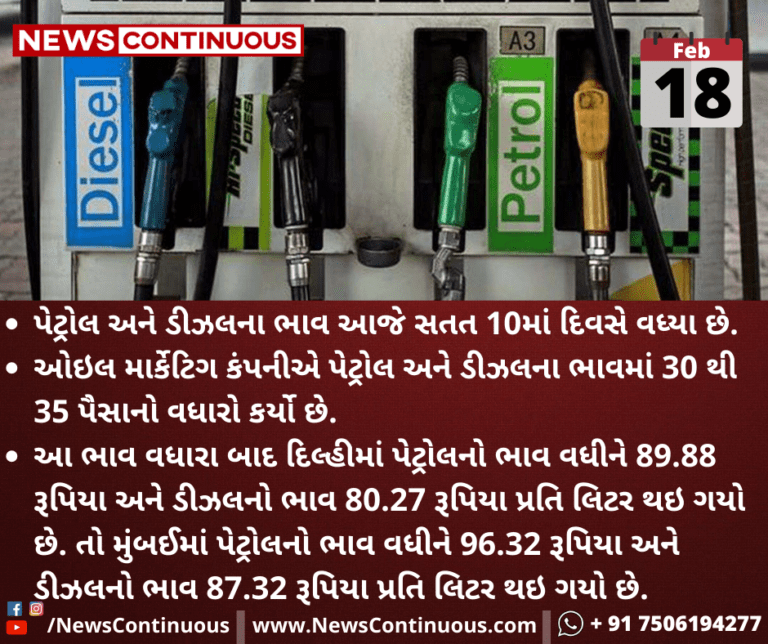 પેટ્રોલ અને ડીઝલના ભાવ આજે સતત 10માં દિવસે વધ્યા છે.