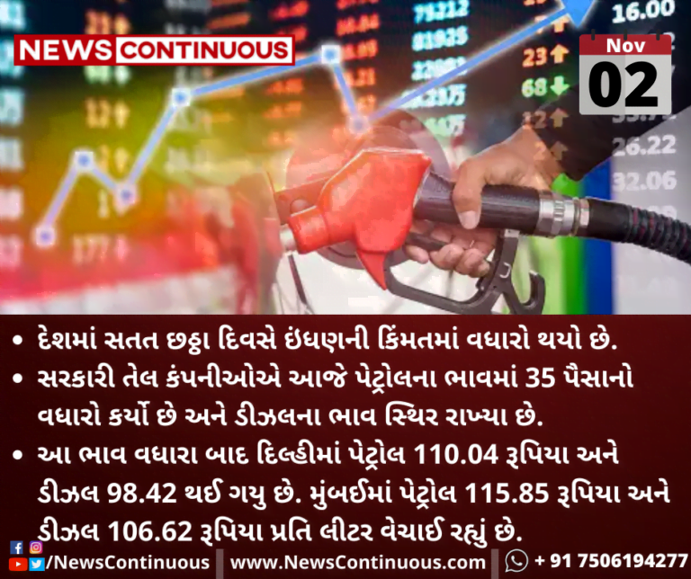 દેશમાં સતત છઠ્ઠા દિવસે ઇંધણની કિંમતમાં વધારો થયો છે.
