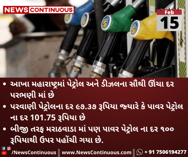 આખા મહારાષ્ટ્રમાં પેટ્રોલ અને ડીઝલના સૌથી ઊંચા દર પરભણી માં છે