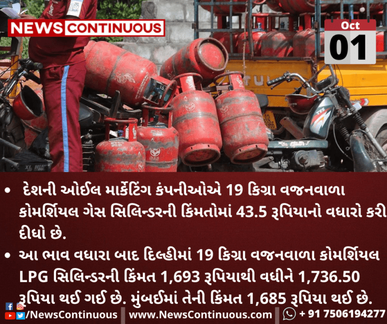 ઉલ્લેખનીય છે કે સપ્ટેમ્બર મહિનામાં સિલિન્ડરની કિંમતમાં 75 રૂપિયાનો વધારો થયો હતો.