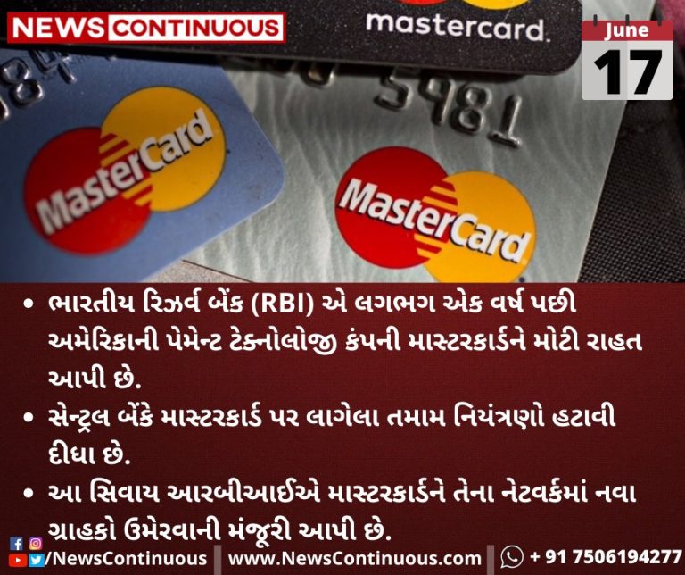 ભારતીય રિઝર્વ બેંક (RBI) એ લગભગ એક વર્ષ પછી અમેરિકાની(USA) પેમેન્ટ ટેક્નોલોજી કંપની(Payment technology company) માસ્ટરકાર્ડને(MasterCard) મોટી રાહત આપી છે.