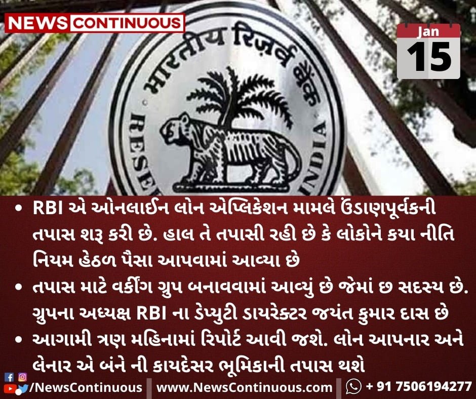 RBI એ ઓનલાઈન લોન એપ્લિકેશન મામલે ઉંડાણપૂર્વકની તપાસ શરૂ કરી છે. હાલ તે તપાસી રહી છે કે લોકોને કયા નીતિ નિયમ હેઠળ પૈસા આપવામાં આવ્યા છે