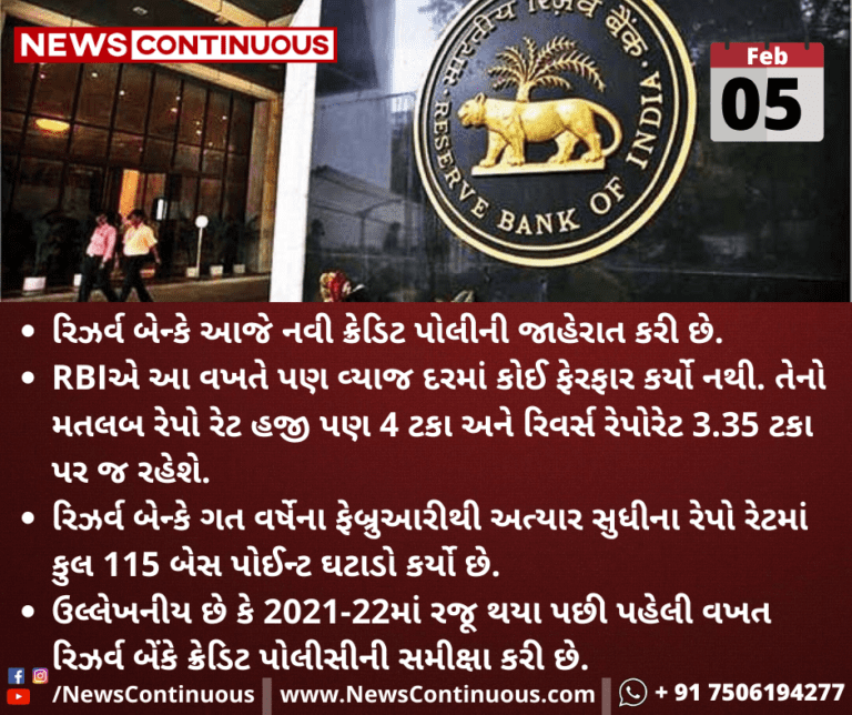 ભારતીય રિઝર્વ બેન્કે આજે નવી ક્રેડિટ પોલીની જાહેરાત કરી છે.