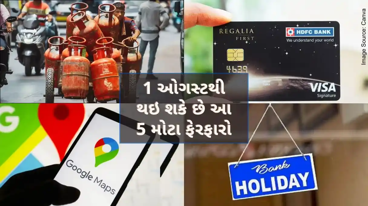 Rule Change: જુલાઈ મહિનો પૂરો થવાનો છે અને ઑગસ્ટ ( August 2024 ) શરૂ થવાનો છે. જેમાં હવે માત્ર બે દિવસ બાકી છે અને તે પછી, 1 ઓગસ્ટથી, દેશમાં ઘણા મોટા ફેરફારો જોવા મળશે. જેની સીધી અસર તમારા ઘરના રસોડામાં અને તમારા ખિસ્સા પર પડી શકે છે. તેમાં એલપીજી સિલિન્ડરની કિંમતથી લઈને ક્રેડિટ કાર્ડના નિયમોમાં ફેરફાર સુધીની દરેક બાબતોનો સમાવેશ થાય છે. ચાલો જાણીએ આવા જ 5 મોટા ફેરફારો વિશે…