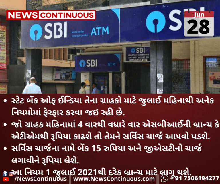 સ્ટેટ બેંક ઓફ ઈન્ડિયા તેના ગ્રાહકો માટે જુલાઈ મહિનાથી અનેક નિયમોમાં ફેરફાર કરવા જઇ રહી છે.