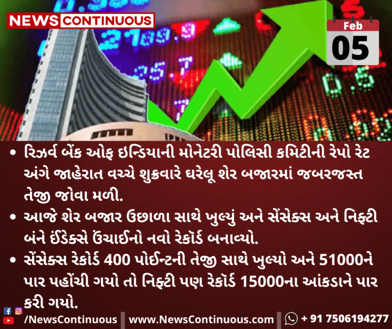 સેંસેક્સ રેકોર્ડ 400 પોઈન્ટની તેજી સાથે ખુલ્યો અને 51000ને પાર પહોંચી ગયો તો નિફ્ટી પણ રેકૉર્ડ 15000ના આંકડાને પાર કરી ગયો.