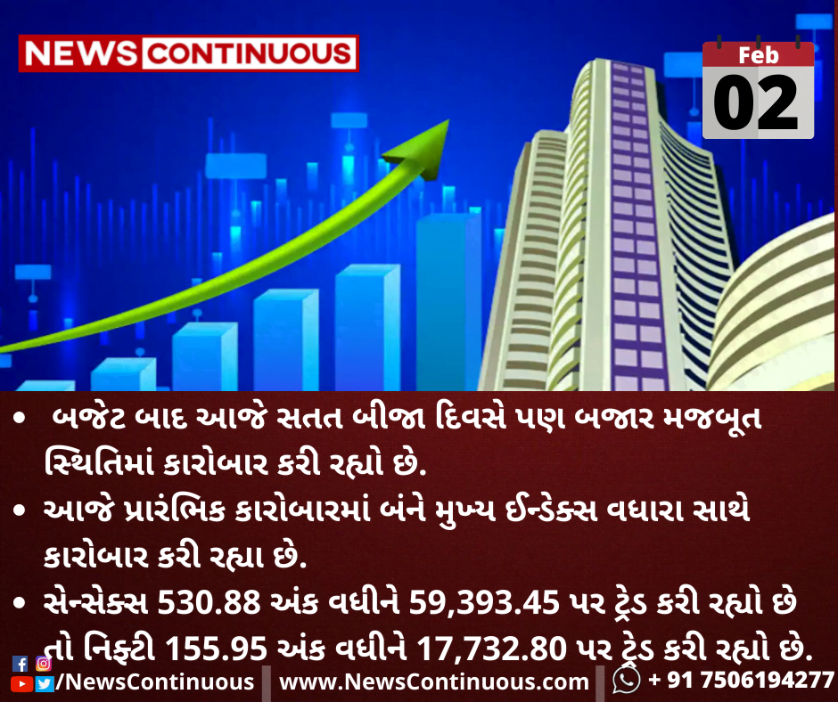 બજેટ બાદ આજે સતત બીજા દિવસે પણ બજાર મજબૂત સ્થિતિમાં કારોબાર કરી રહ્યો છે.