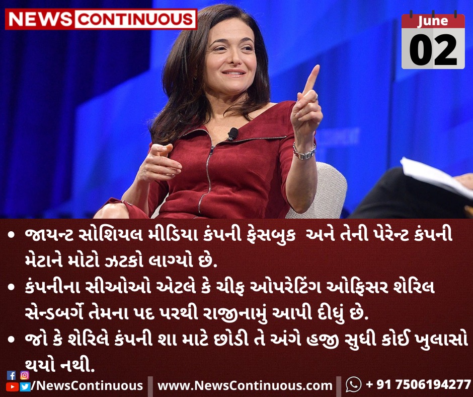 કંપનીના સીઓઓ(COO) એટલે કે ચીફ ઓપરેટિંગ ઓફિસર(Chief Operating Officer) શેરિલ સેન્ડબર્ગે(Sheryl Sandberg) તેમના પદ પરથી રાજીનામું(Resignation) આપી દીધું છે.