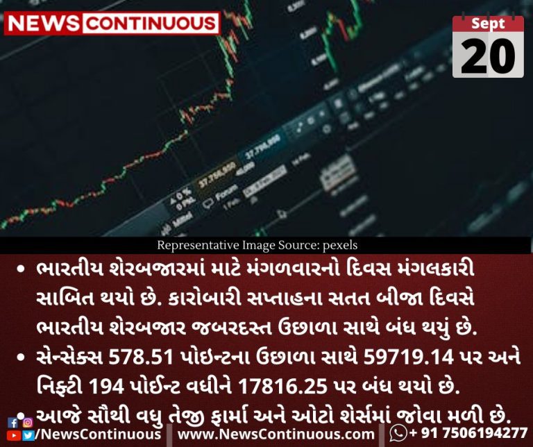 સેન્સેક્સ(Sensex) 578.51 પોઇન્ટના ઉછાળા સાથે 59719.14 પર અને નિફ્ટી(Nifty) 194 પોઈન્ટ વધીને 17816.25 પર બંધ થયો છે.
