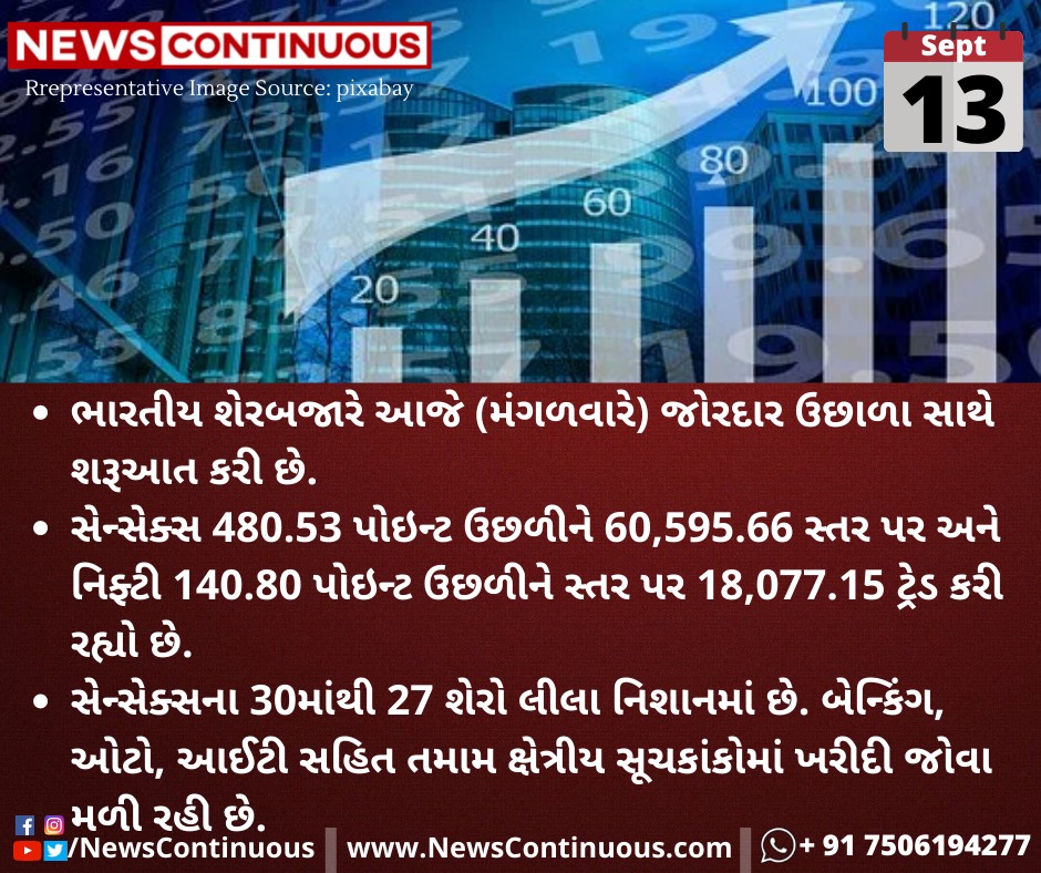 ભારતીય શેરબજારે(Indian stock market) આજે (મંગળવારે) જોરદાર ઉછાળા સાથે શરૂઆત કરી છે.