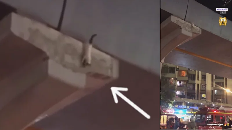 મુંબઈના મલાડમાં ફ્લાયઓવર પર કોઈક રીતે ઊંચે ચઢી આવેલી એક બિલાડીને અગ્નિશામકોની ટીમ દ્વારા સુરક્ષિત રીતે બચાવી લેવામાં આવી હતી. વાયરલ વિડિયોની એ ક્ષણ કેમરામાં કેપ્ચર થઈ છે જ્યારે બિલાડી સંપૂર્ણપણે બચાવ જાળમાં કૂદી પડી હતી. એ સમયે મુંબઈના રસ્તા પર સેંકડો લોકોની ભીડ જામી હતી અને લોકો તમાશો જોવા ઉભા રહી ગયા હતા. ટ્રાફીક પણ રોકવામાં આવ્યો હતો.