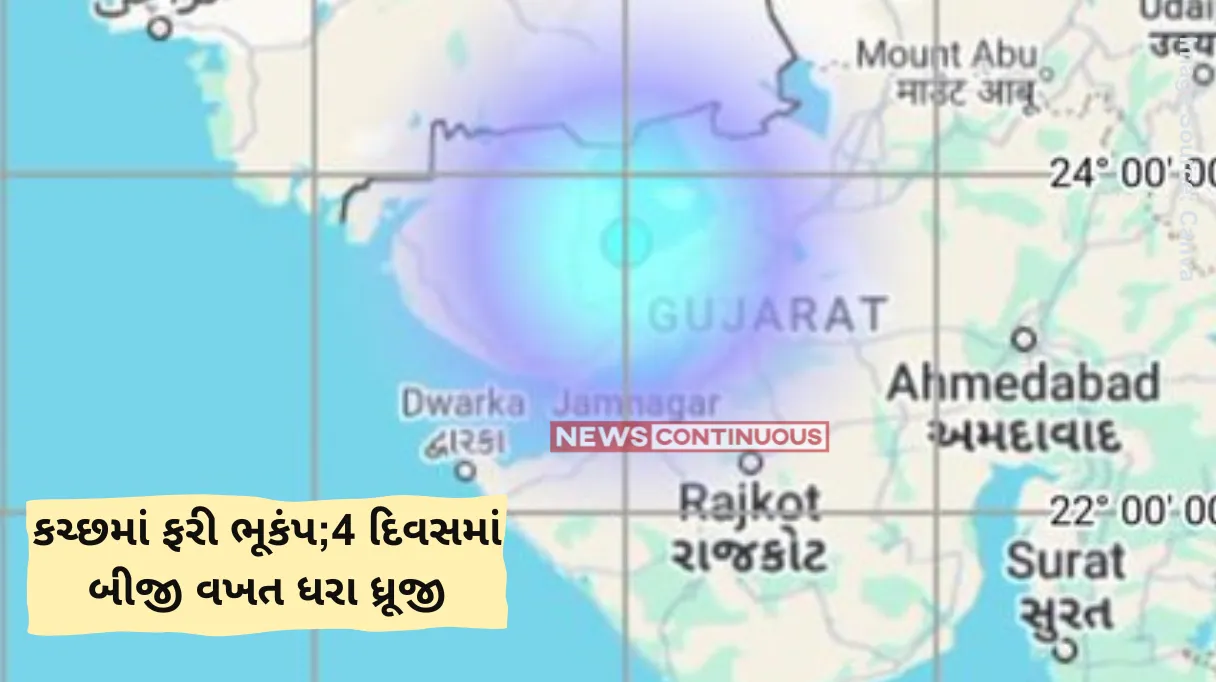 ગુજરાતમાં છેલ્લા ચાર દિવસમાં બીજી વખત ભૂકંપના આંચકા અનુભવાયા છે.
