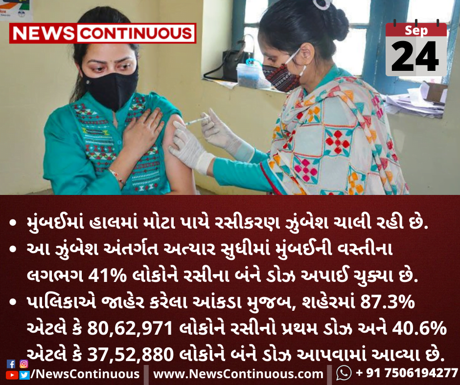 મુંબઈમાં હાલમાં મોટા પાયે રસીકરણ ઝુંબેશ ચાલી રહી છે.