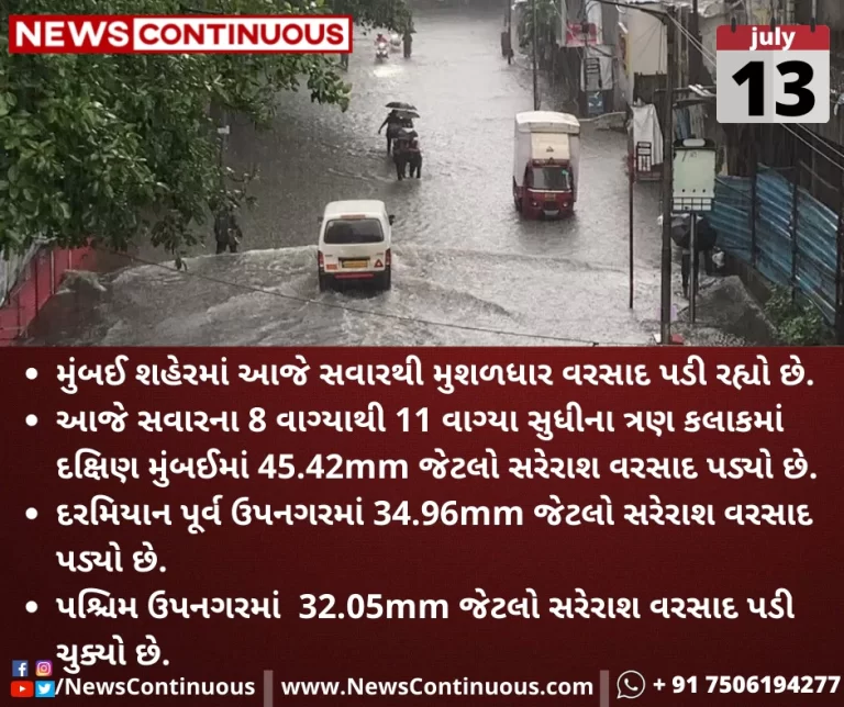 આ સમાચાર પણ વાંચો : વરસાદે વધારી ઉપાધી- સેન્ટ્રલ રેલવે ખોરવાઈ- આ સ્ટેશન પર સર્જાઈ ટેક્નિકલ ખામી- જાણો વિગત