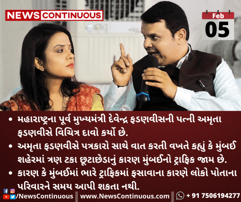 અમૃતા ફડણવીસે પત્રકારો સાથે વાત કરતી વખતે કહ્યું કે મુંબઈ શહેરમાં ત્રણ ટકા છૂટાછેડાનું કારણ મુંબઈનો ટ્રાફિક જામ છે.