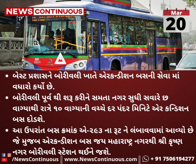 બેસ્ટ પ્રશાસને બોરીવલી ખાતે એરકન્ડીશન બસની સેવા માં વધારો કર્યો છે.