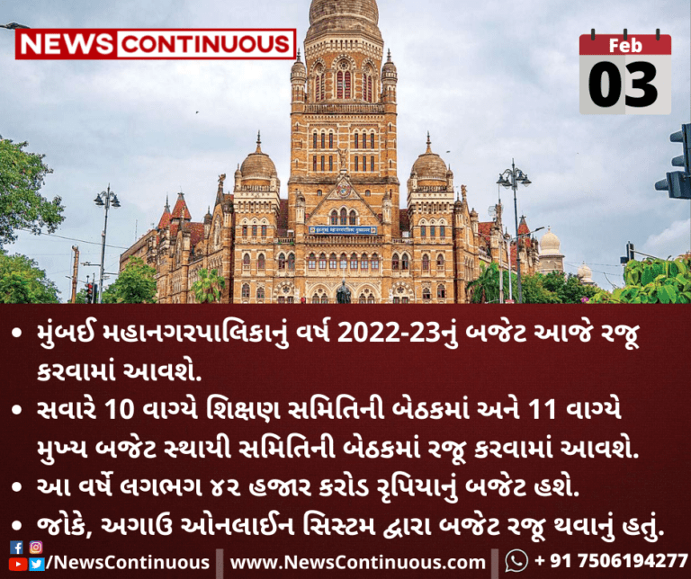 મુંબઈ મહાનગરપાલિકાનું વર્ષ 2022-23નું બજેટ આજે રજૂ કરવામાં આવશે.